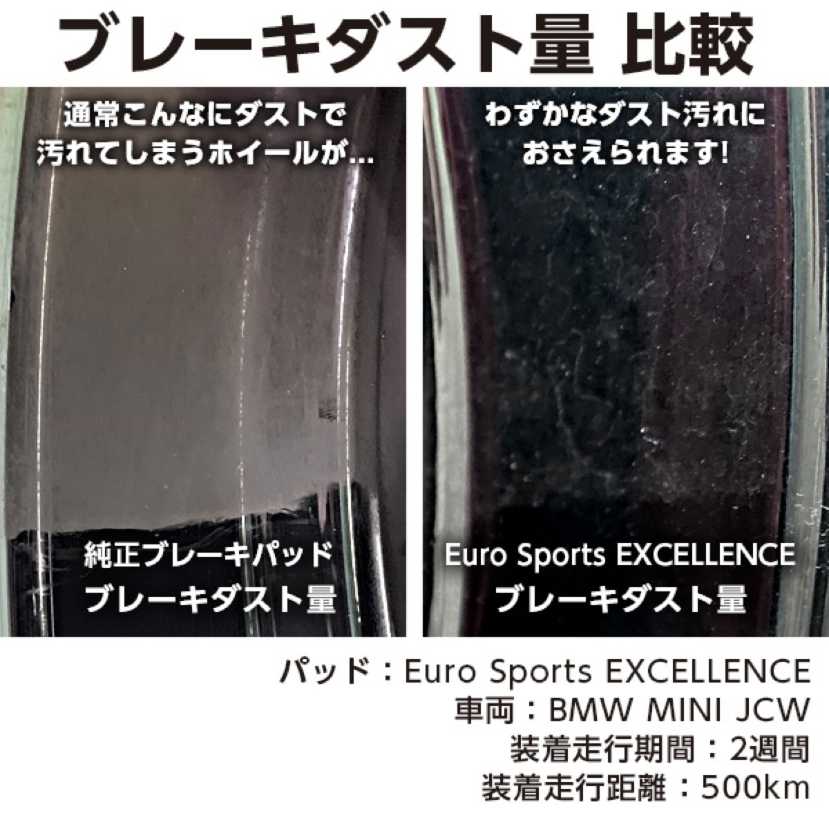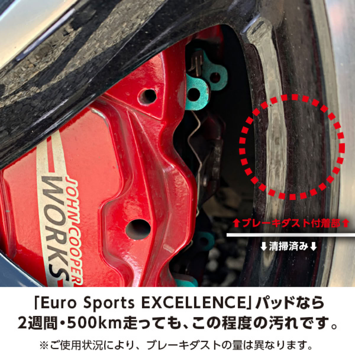 EURO SPORTS Excellence具有更出色的運動性制動表現,同時亦有抑制制動灰塵和噪音效果,並能將制動碟的受損害在最低限度,具有優良操控性,為駕駛者提供舒適的制動腳感。其工作溫度在0~500℃之間,摩擦系數為0.38~0.45μ,適合大部份流行歐洲車款使用。